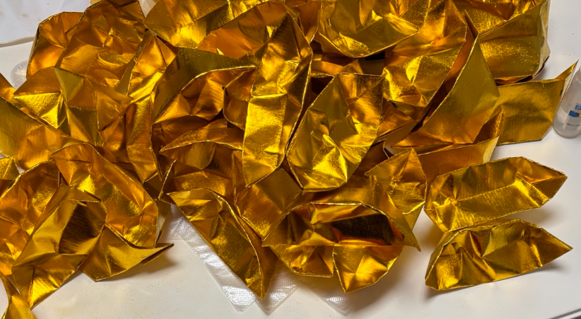 丧葬一条龙用品店里的锡箔纸“金元宝”