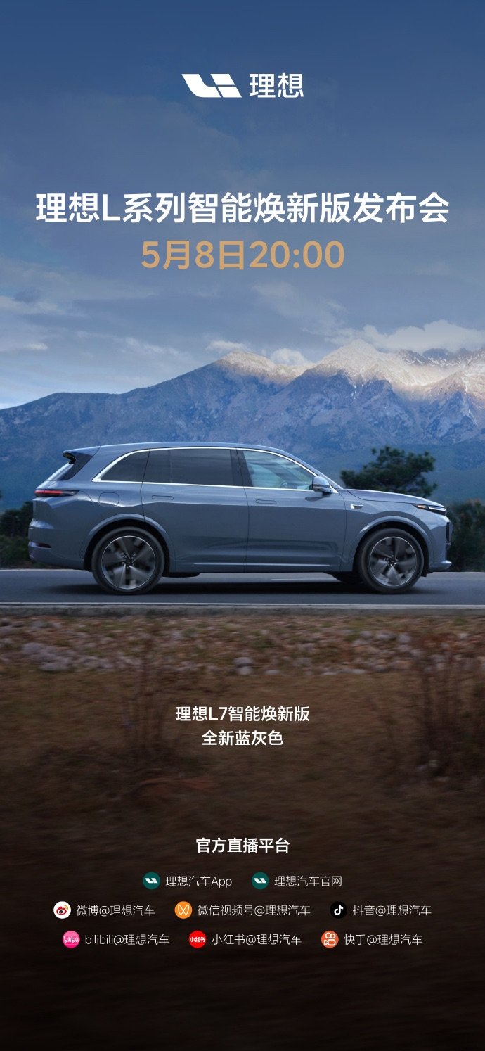 昨日,联想汽车宣布旗下 L 系列智能焕新版发布会定档,将在 5 月 8 日举行。联想方面表示,本次联想 L7 智能焕新版将带来全新蓝灰色。