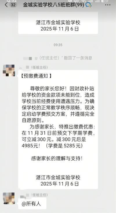 “因财政补贴给学校的资金款项未能到位,酿成学校面前经费使用遭受压力。为确保学校的平方教授顺次顺畅,现决定开动膏火预交决议……”11月11日,一则题名为广东湛江市金城施行学校的见告在网玄机传开来,激励热议。对此,市阐发局回话称,辖区阐发局已介入料理。