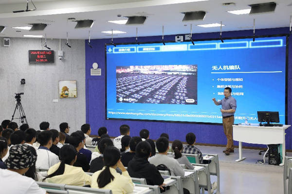 该课程由副校长兼计较机与信息科学学院院长贾韬领衔,依托计较机与信息科学学院,协同多学院师资共同讲课。在初次合股课堂上,贾韬从无东谈主机编队、图像识别等骨子应用切入,深切浅出地先容了东谈主工智能的技能远景与伦理规模,指引学生建直立确的技能价值不雅。